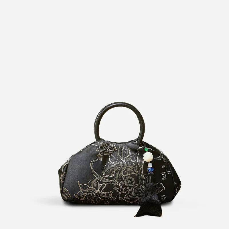 Brocade Chinese Style Bag Black Floral Handbag