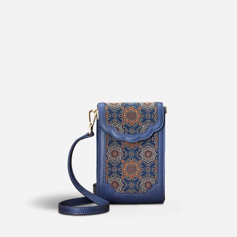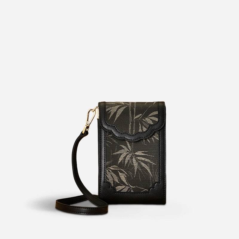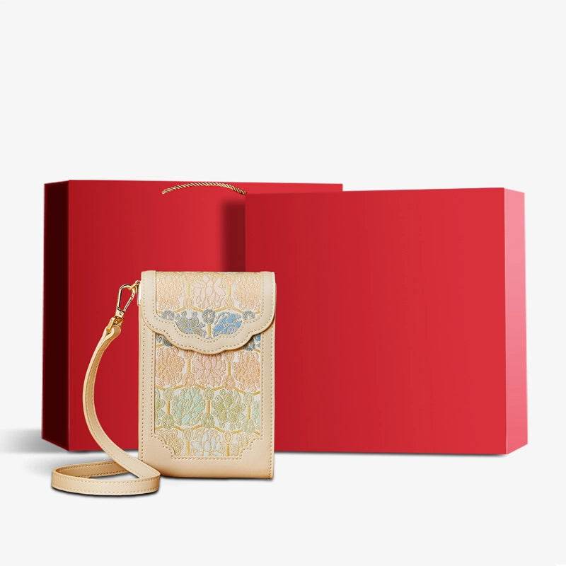Brocade Jacquard Leather Bag Intricate Phone Chinese Wallet