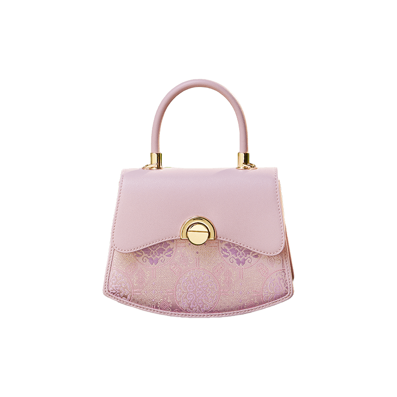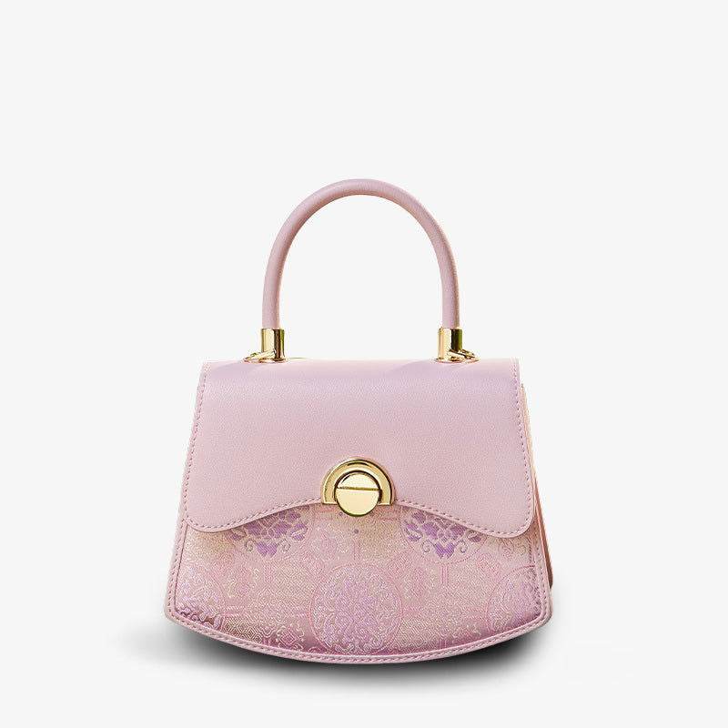 Brocade Mulberry Silk Bag Powder Pink Floral Designer Handbag