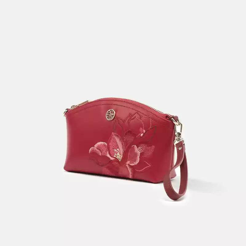 Embroidery Leather Red Magnolia Women‘s Handbag Wallet