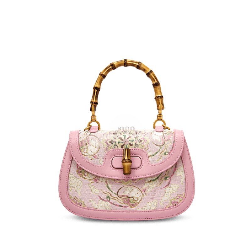 Song Brocade Pink Mulberry Silk Handbag with Bamboo Handle