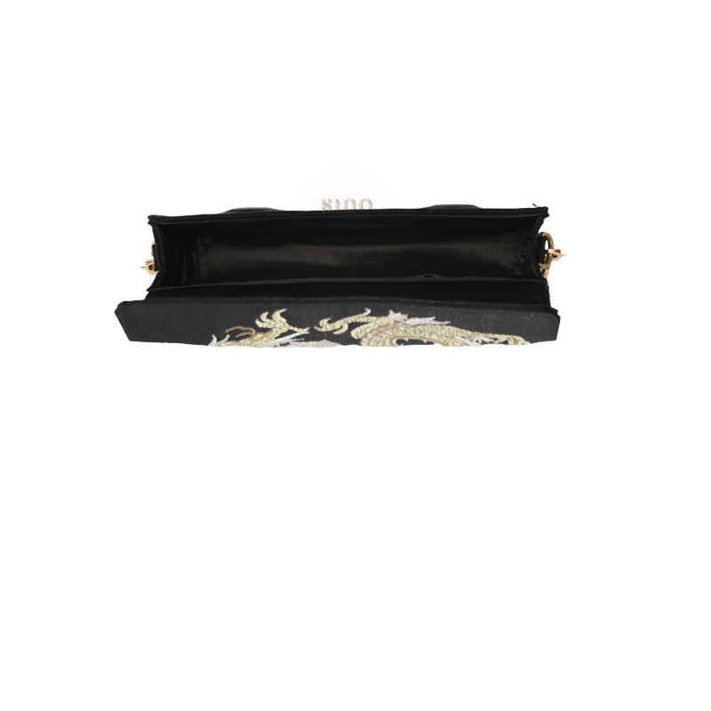 Ultra-Light Loong Silk Embroidery Black Evening Bag Recycled Fabric 154g